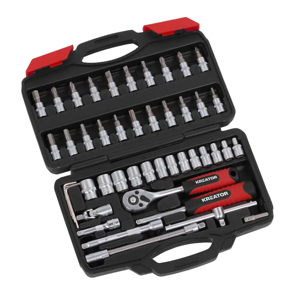 O Conjunto de Roquete com Mala da Kreator é composto por 46 peças para desapertar ou apertar porcas e parafusos.
