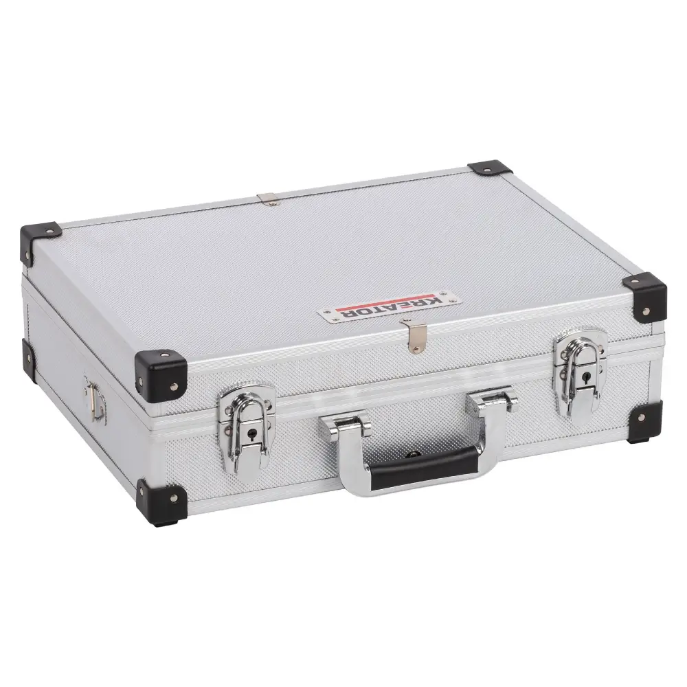 A Mala de Alumínio da Kreator é resistente, leve e com um interior alcochoado, sendo perfeita para armazenar e transportar as suas ferramentas de forma segura