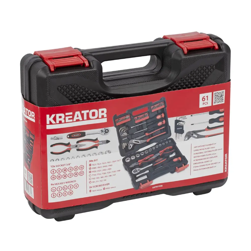 A Mala de Ferramentas da Kreator está equipada com 61 peças essenciais para os seus trabalhos.