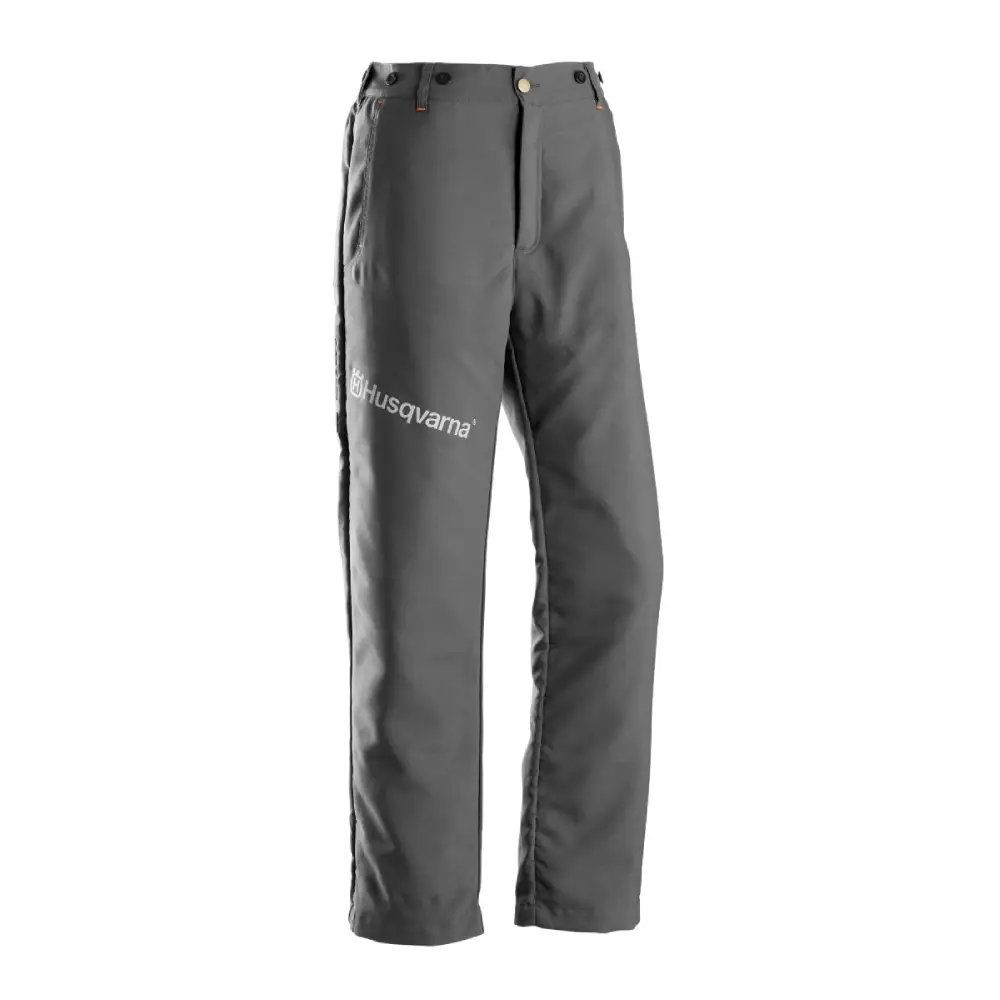Calças de proteção Husqvarna Classe 1 com um desempenho confiável e acessível para cortar lenha e outras tarefas ocasionais ao ar livre. Dois bolsos frontais e zíperes de ventilação na parte de trás das pernas garantem conforto e comodidade.