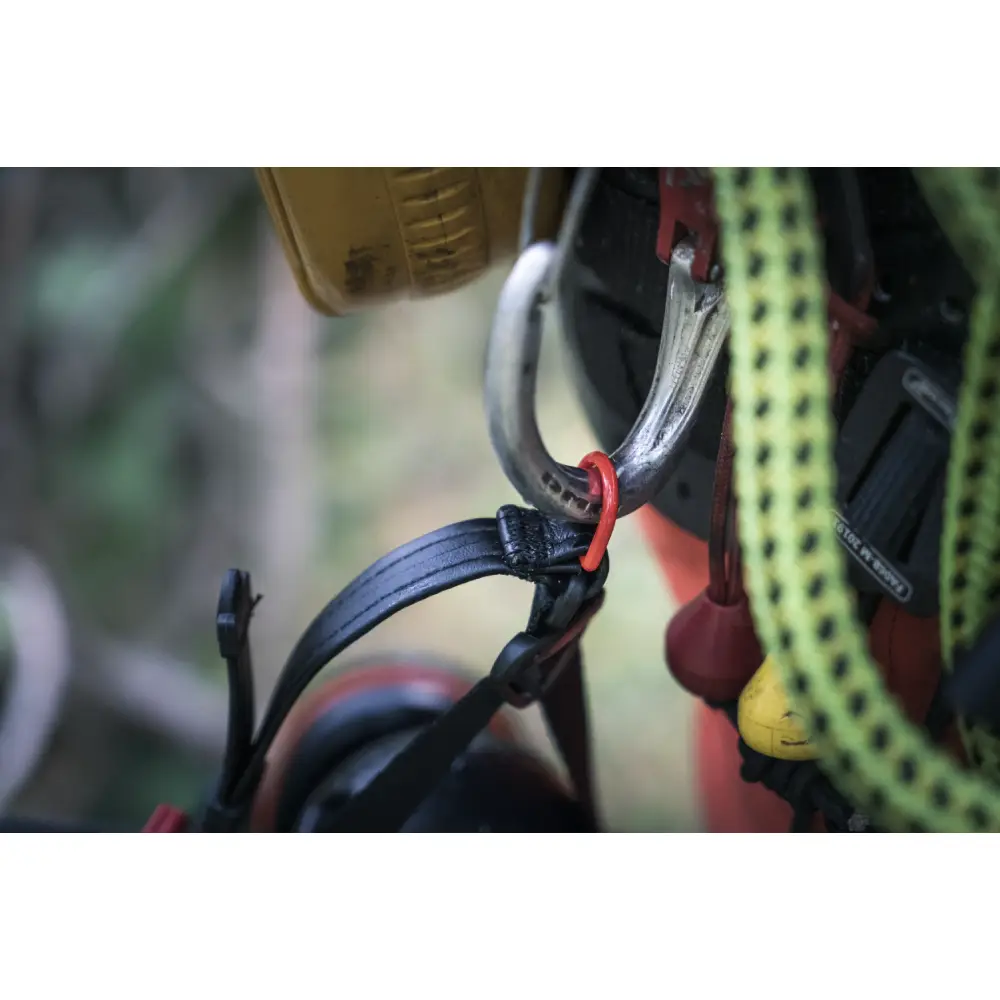 O gancho de fixação na barbela do queixo facilita a fixação do Capacete Spire Vent ao seu arnês.