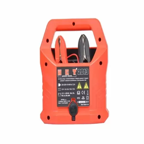 O carregador de bateria compacto HCT BTC2013 é uma ajuda indispensável para, por exemplo, carros, motos, barcos ou casas móveis. Tem quatro níveis de carga de até 15 A e é adequado para todos os dispositivos comuns de 12 volts. As luzes led presentes no display irão fornecer-lhe informações acerca do estado da carga e vem equipado com um fusível de curto-circuito integrado e inversor de polaridade.
