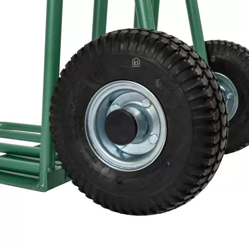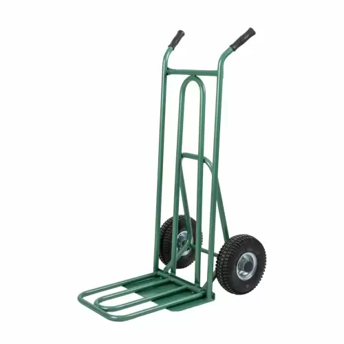 O carrinho de armazém com báscula é robusto e eficaz para cargas pesadas. Com báscula, tem capacidade de carga extra. Rodas pneumáticas 2.60 x 85 e rolamento duplo garantem mobilidade suave. Dimensões de 55x115 cm e grade rebatível de 45x35 cm oferecem versatilidade. Carga útil de 200 kg, ideal para armazéns. Durável e confiável, otimiza a logística.