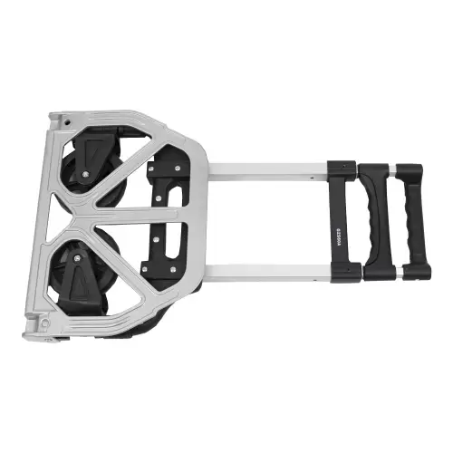 Fabricado em alumínio, é leve e resistente, com duas rodas compactas de borracha maciça de 125mm e uma pega de segurança robusta.
