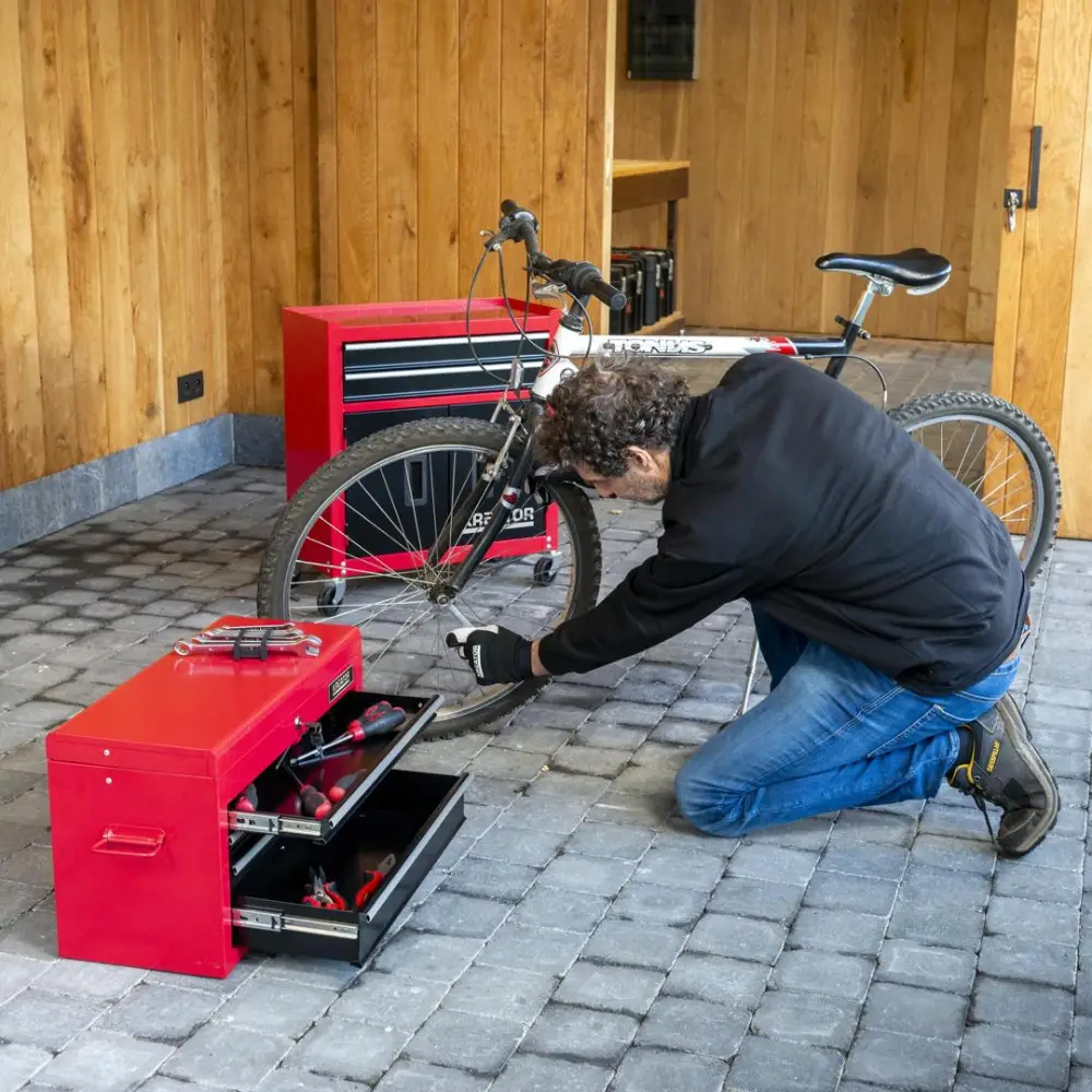 O Carro de Feramentas é composto por 4 rodas giratórias que oferecem a manobrabilidade necessária. Trave as rodas no lugar usando o travão.