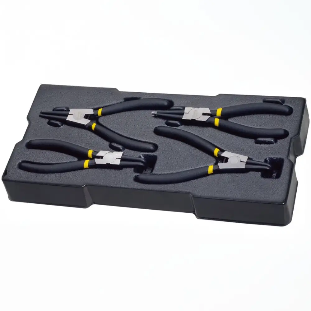 • 4 Alicates control grip:  Alicate de boca curva 200 mm, alicate de corte diagonal 150 mm, alicate universal 180 mm e descascador de fios