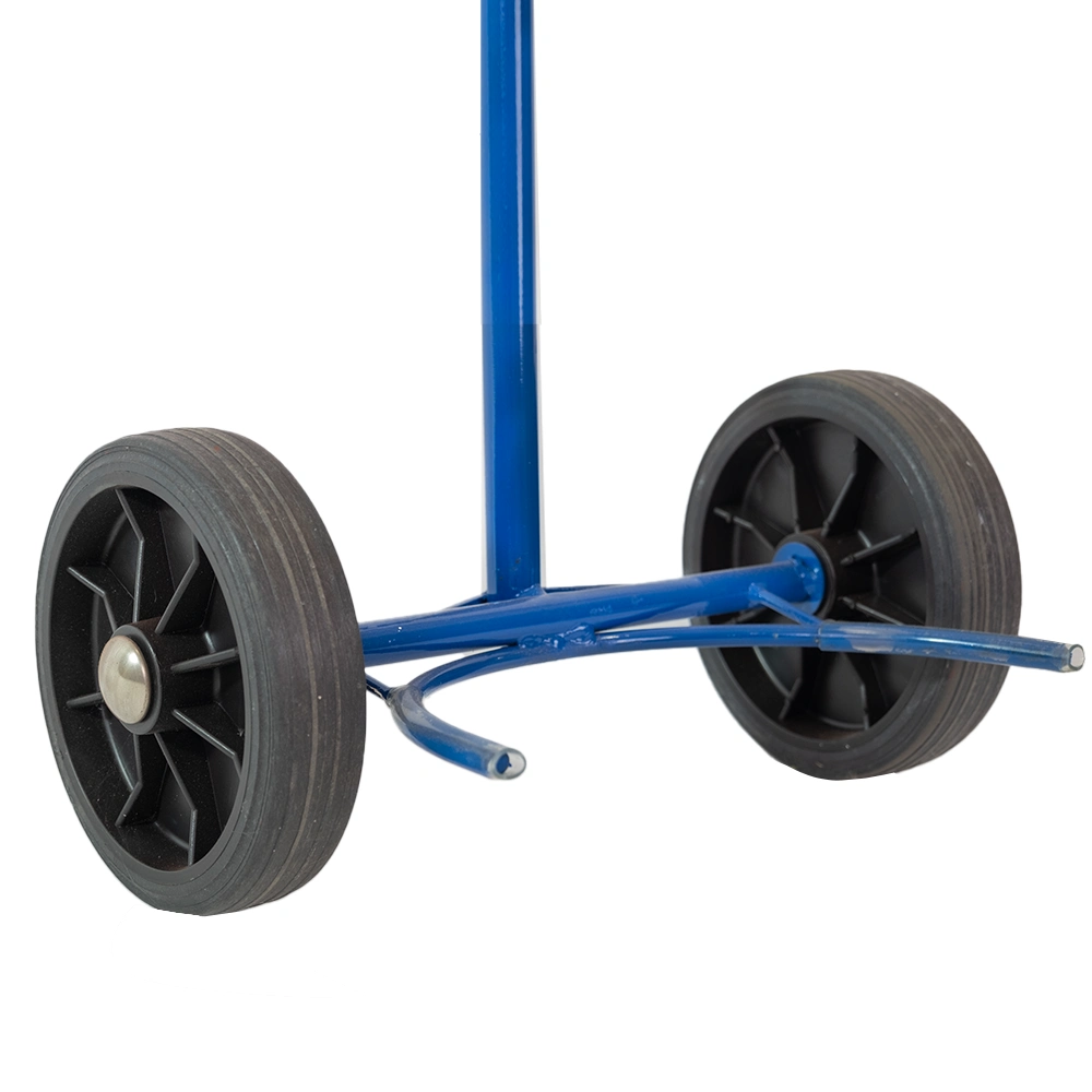 O carrinho de transporte de garrafas de gás possui uma altura de 1150 mm e uma largura de 450 mm, sendo ideal para a utilização em espaços apertados.