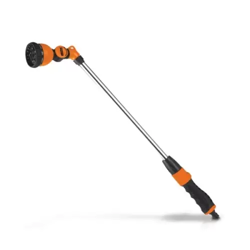 Chuveiro 10 Padrões HCT 08230 é ideal para regar canteiros, vasos de flores e cestos suspensos A forma ergonômica longa permite que o trabalho seja feito em alturas adequadas. A cabeça do chuveiro pode ser ajustada de forma variável em diferentes posições, pois pode ser inclinada em 180 °. O manuseio é particularmente fácil. Tem a opção de definir 10 padrões de aspersão diferentes .