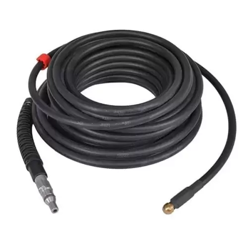 A mangueira de alta pressão tem um encaixe metálico rápido e pode ser ligada diretamente a uma pistola de lavagem de pressão.