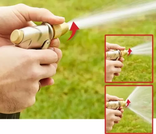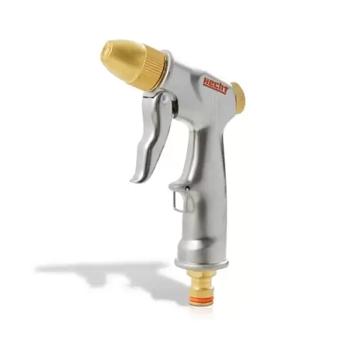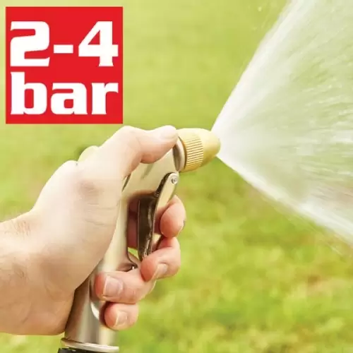 A cabeça da pistola pode ser girada para ajustar o jato de água consoante as suas necessidades. O punho ergonômico e antiderrapante transmite-lhe uma sensação agradável de conforto e o trabalho de irrigação pode ser feito sem esforços.