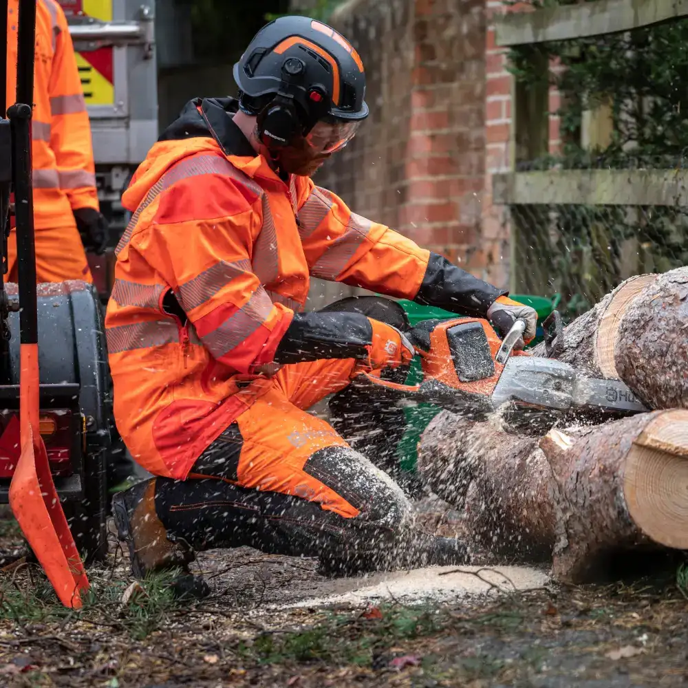 Made to be used year-round in all weather conditions! This pruning chainsaw meets the requirements of the IPX4 rating for rain resistance.