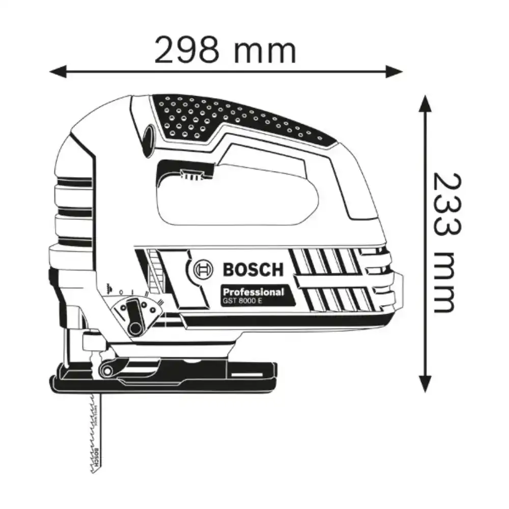 Robust and suitable for various types of applications, the Bosch GST 8000E Jigsaw is an indispensable tool for carpentry, Carpentry, installations, renovations, and precision work requiring clean, high-quality cuts!