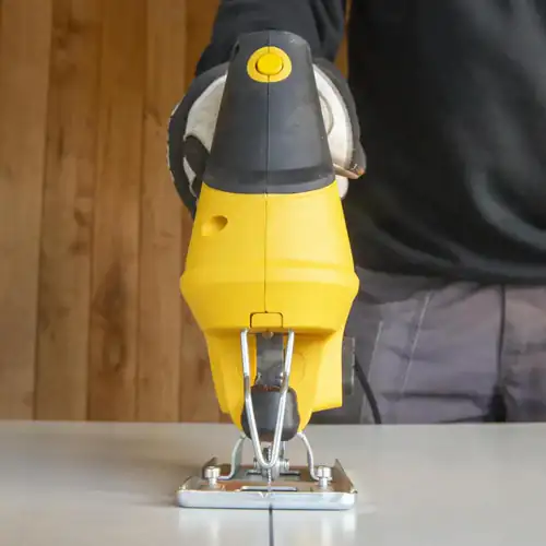 You can use this jigsaw to cut irregular shapes, but also for straight or angled cuts. That's because it's equipped with a robust side guide and an adjustable foot. It's possible to cut up to 6 mm in steel, up to 20 mm in plastic, and up to 65 mm deep in wood!