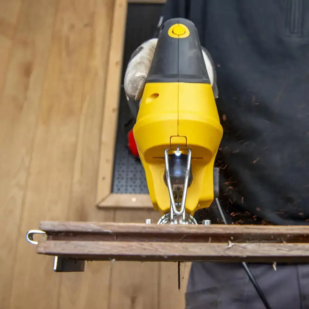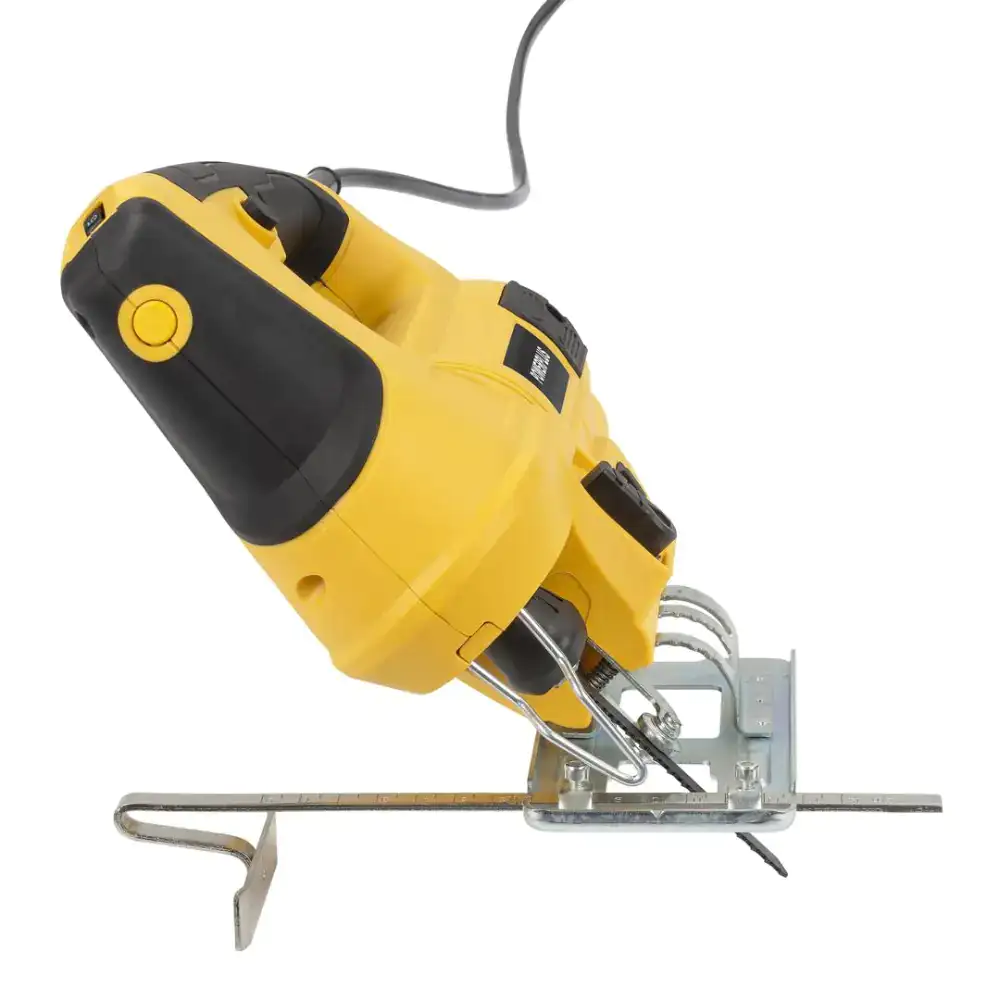 It is a practical and versatile power tool, ideal for DIY projects and small interventions at home or in the workshop. It is equipped with a 710W motor and is especially suitable for wood, plastic and metal. Allows the user to perform both straight cuts and curved or more detailed cuts! This saw stands out for its adaptability to different types of work, thanks to the electronic speed control, which allows you to adjust the number of rotations according to the material and the type of cut desired. In addition, it has an adjustable base that can be tilted up to 45°. The presence of multiple levels of pendulum movement also contributes to more efficient performance and a faster or finer cut, as needed. Another strong point of this model is the functionality designed for comfort and cleanliness during use. The tool includes a vacuum cleaner connection, which allows you to remove the dust generated during cutting and keep the work area clean, as well as a blowing function that keeps the cutting line visible. The included side guide also helps to obtain straight and parallel cuts! Regarding cutting capabilities, this saw allows you to work with wood up to about 65 mm thick, plastic up to 20 mm and steel up to 6 mm, which makes it Quite versatilefor different household applications. It is compatible with T and U type shank blades.