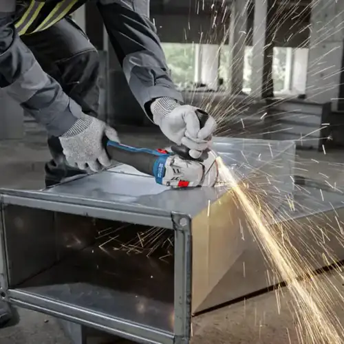 The Bosch GWS18V-8 Angle Grinder is practical to use thanks to its compact and lightweight design, provides faster cutting performance, and is designed for cutting rods, sheet metal, PVC, and tiles, or for deburring light metals.