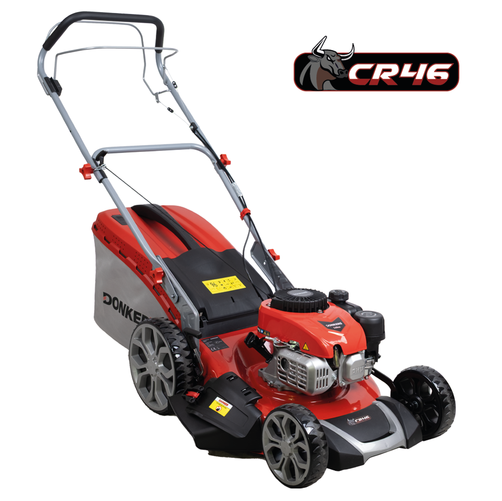 A tração nas rodas facilita o manuseamento e deslocação do Donker´s CR46 e grante um corte preciso no jardim.