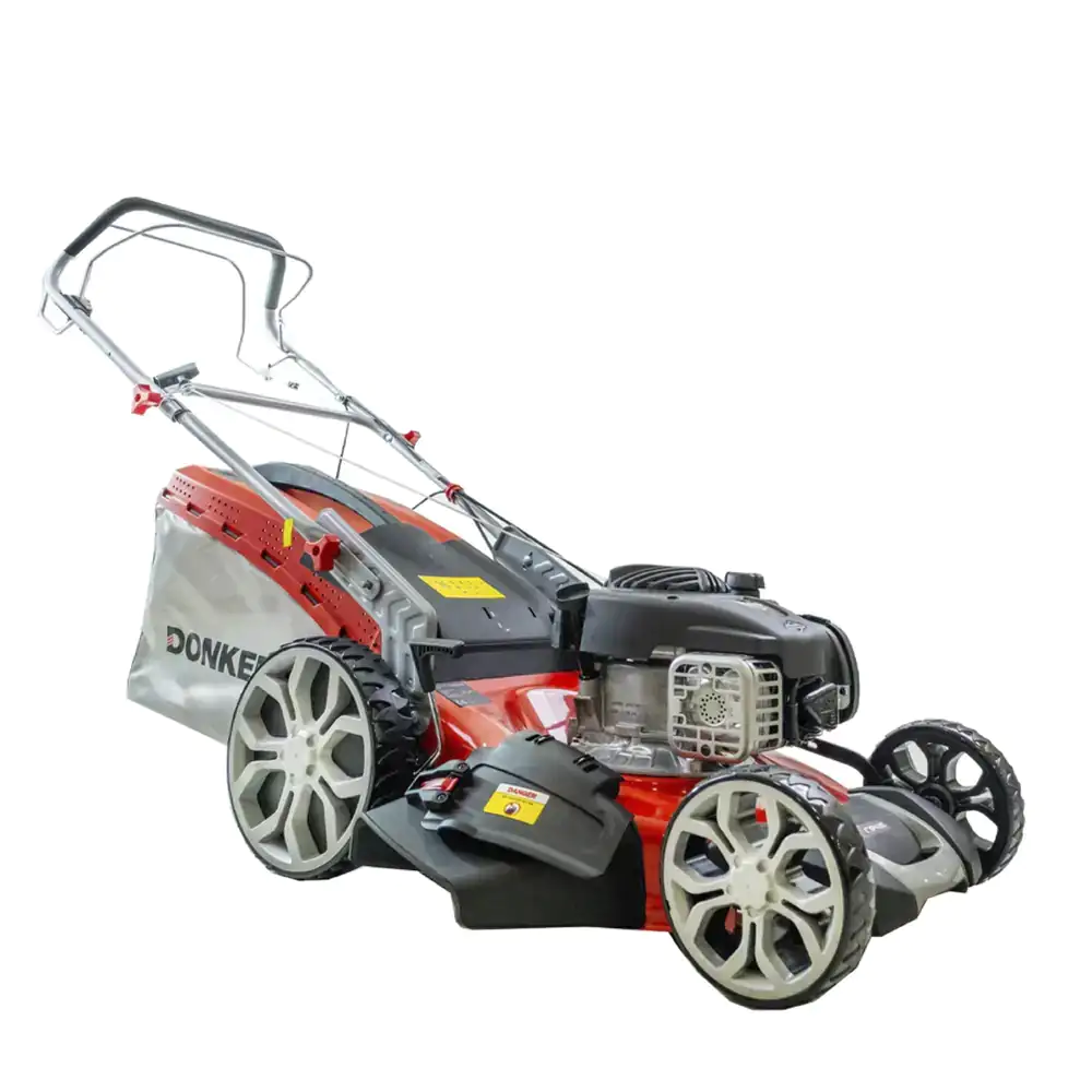 A Tração nas rodas facilita o manuseamento e deslocação do Donker’s CR46T e garante corte preciso no jardim.