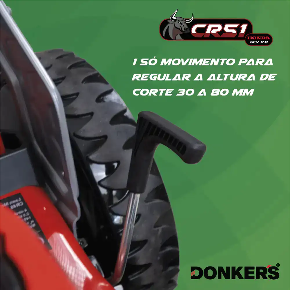 Corta Relva Gasolina Donker’s Honda CR 5em1 c/ Tração, motor de 166cc e regulação central da altura de corte em 6 posições diferentes para resultados de corte uniformes em relvados irregulares e de grandes dimensões