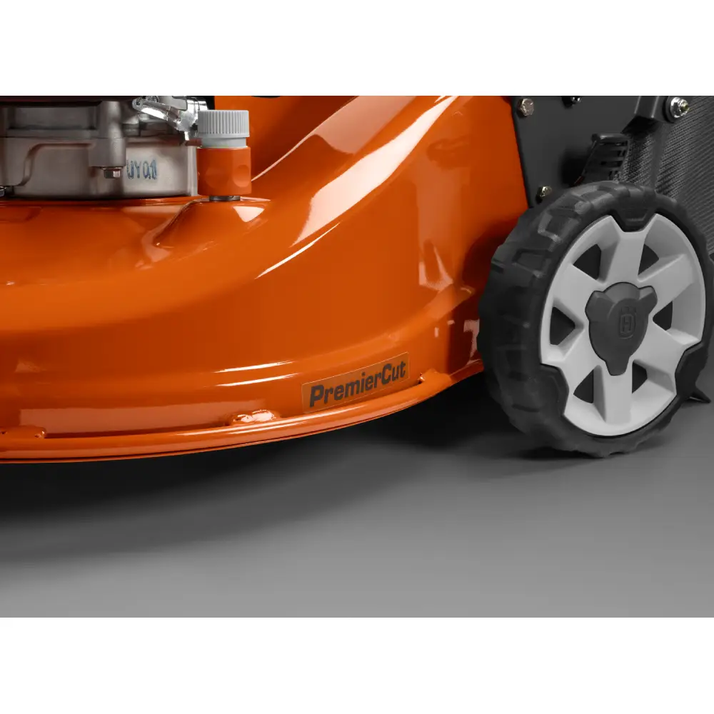 Robusto Corta-Relva Husqvarna LC 353 c/ Tração 4×4, reputado motor Honda de tecnologia Japonesa, sistema semi automático de limpeza do deck e plataforma PremierCut reforçada.