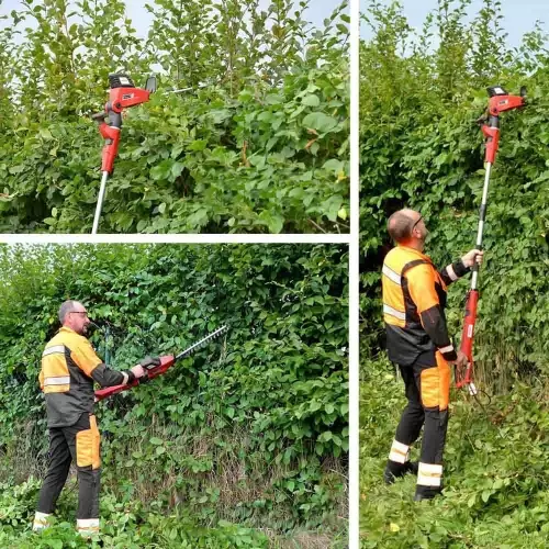Com um motor elétrico monofásico de 230V e 750W de potência o corta sebes telescópico HCT 675 é eficiente, potente e fiável.