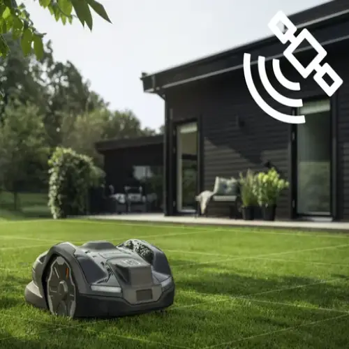 A navegação assistida por GPS garante uma cobertura completa do seu jardim, distribuindo o corte de forma uniforme.