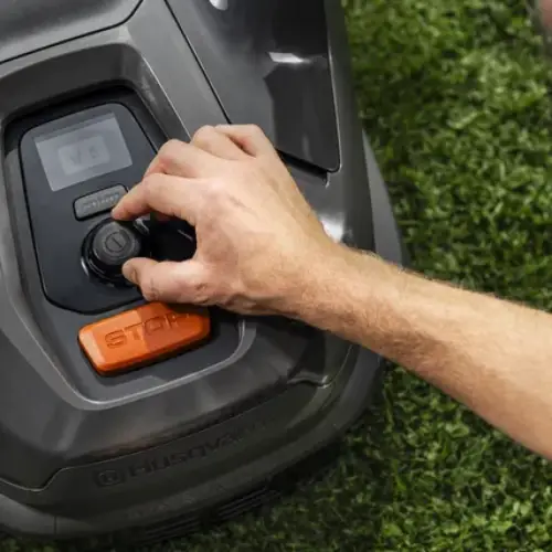O ajuste elétrico da altura de corte torna prática a definição da altura pretendida através da aplicação Husqvarna Automower® Connect.