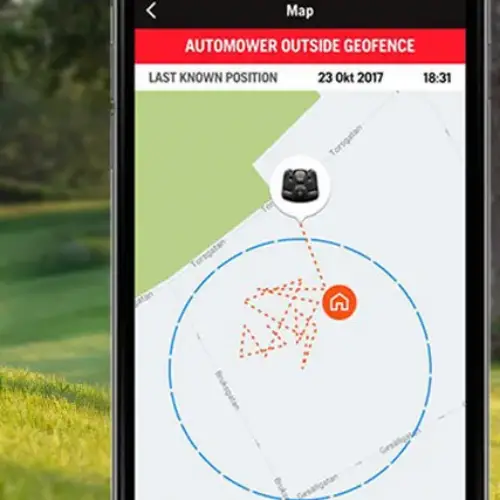 Se o corta-relva for deslocado para fora da área predefinida, receberá uma notificação na aplicação, minimizando o risco de roubo.