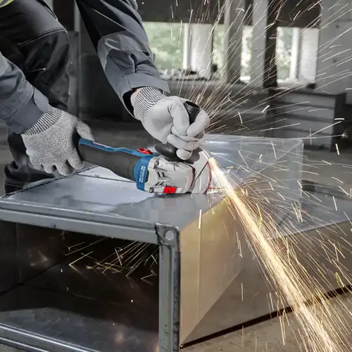 The Bosch GWS 18V-8 Professional is a compact and lightweight angle grinder, ideal for cutting and grinding work. Its balanced design allows for comfortable one-handed use, ensuring greater control even in tighter spaces. Designed for professionals seeking efficiency and speed in their daily work, this tool offers excellent cutting speed and optimized runtime, reducing interruptions for battery recharging. The new narrow ergonomic handle significantly improves comfort and precision during prolonged use. Compatible with Bosch dust extraction systems, it also allows for less dust production, contributing to a cleaner work environment. No-load speed: 11,000 rpm Disc diameter: 125 mm Abrasive disc spindle thread: M14 Disc bore diameter: 22.23 mm mm