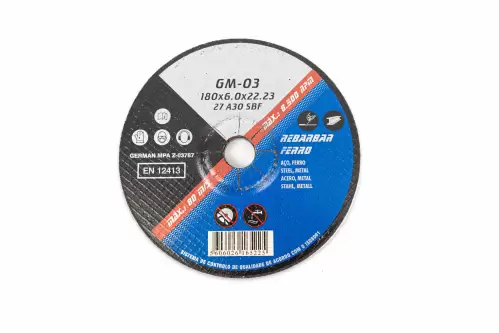 Disco abrasivo rebarbar ferro GM com as medidas 180 x 6.0 x 22.23mm.