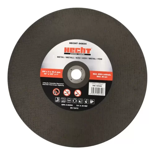 Disco p/ Corte de Ferro Hecht 355mm de diâmetro para corte de chapas, perfis, tubos e barras em ferro ou outros materiais sólidos.