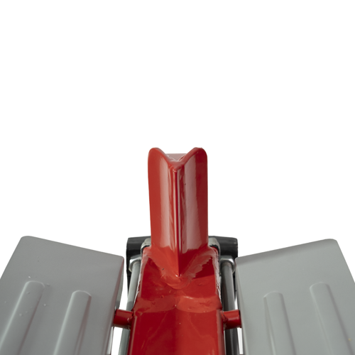 La estructura elevada reduce la necesidad de que el usuario trabaje agachado, mientras que la rejilla protectora que la rodea extraíble) evita que la madera se deslice de la superficie durante el corte.