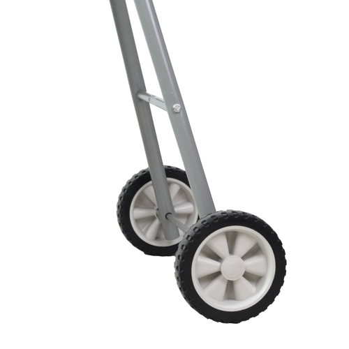 La astilladora de leña está equipada con ruedas robustas y un práctico mango, dos características que facilitan su transporte al lugar de uso.
