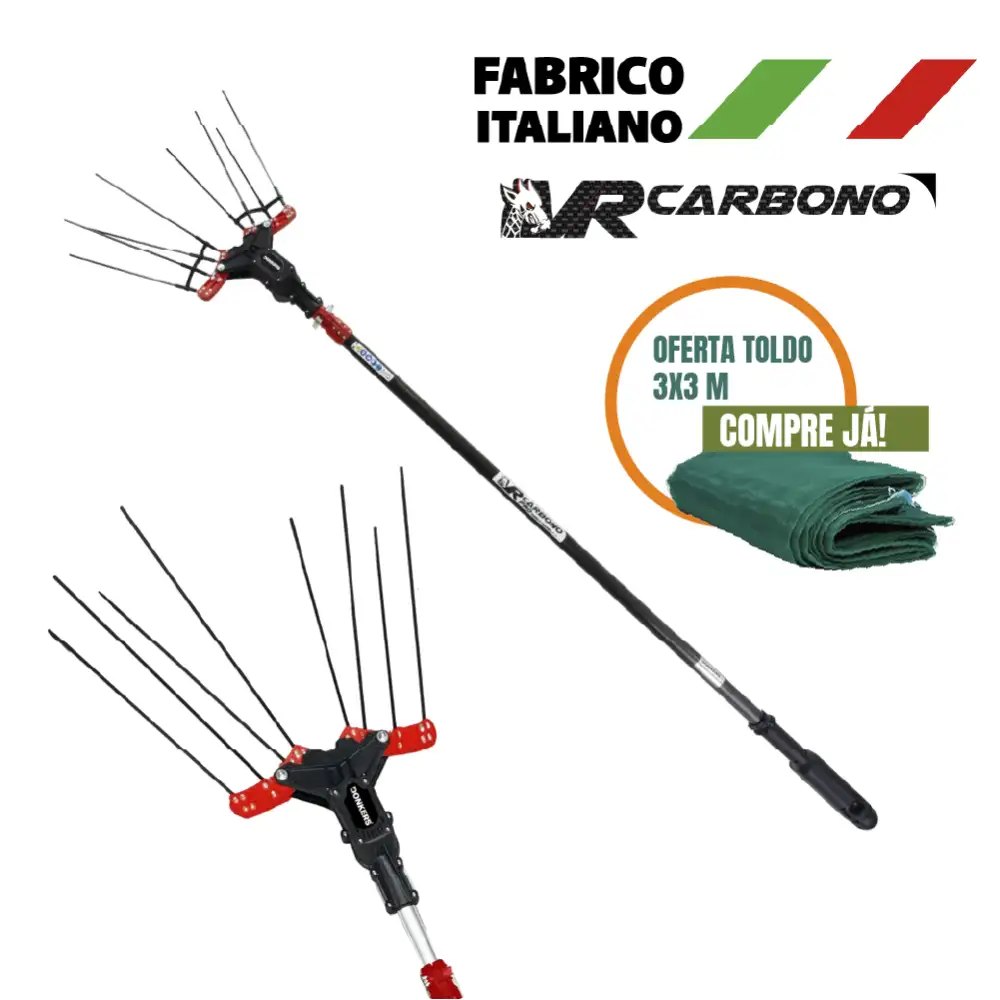 O equipamento conta com 8 varetas, com amplitude equivalente a cabeça de 10 varetas, o que assegura uma cobertura eficiente e ágil das áreas de cultivo. Isto permite varejar uma quantidade significativa de azeitonas de forma mais rápida, otimizando o processo e aumentando a produtividade da colheita.
