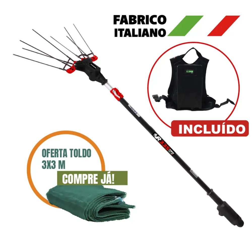 The Donker's VR335 PRO plow comes with several accessories that enhance its functionality. Among them, the 15-meter power cord stands out, providing excellent reach and flexibility, allowing the operator to move around the field without worrying about the proximity of a power source. The equipment has 8 rods, with a width equivalent to a 10-rod head, ensuring efficient and agile coverage of the cultivated areas. This allows for harvesting a significant quantity of olives more quickly, optimizing the process and increasing harvest productivity.