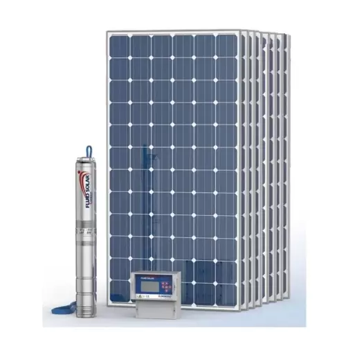 Kit Pedrollo Fluid Solar é utilizada no bombeamento de águas limpas utilizando a energia do sol fornecida pelos painéis solares. O inversor incorporado no motor converte a tensão de saída a partir dos painéis e controla a velocidade de rotação do motor de modo a maximizar a energia fornecida pelos painéis.