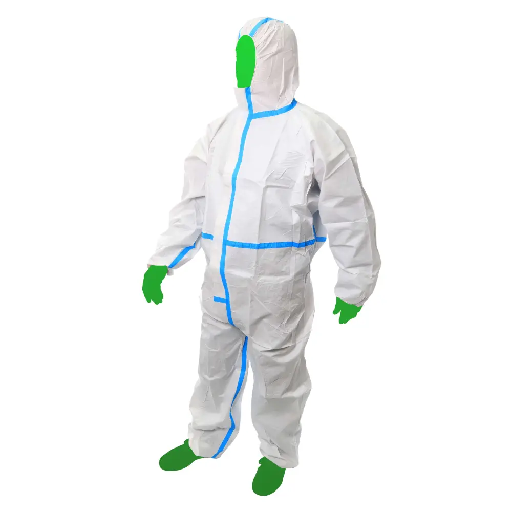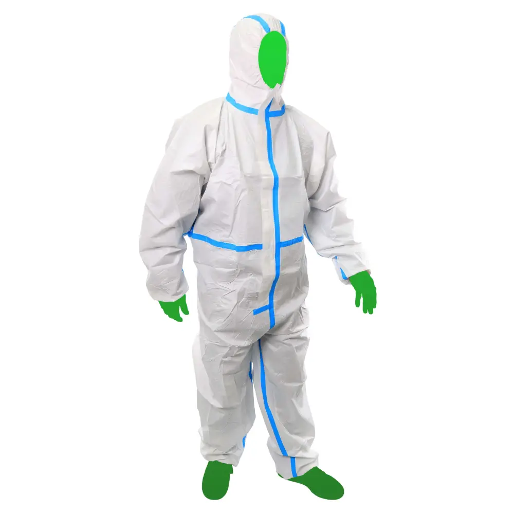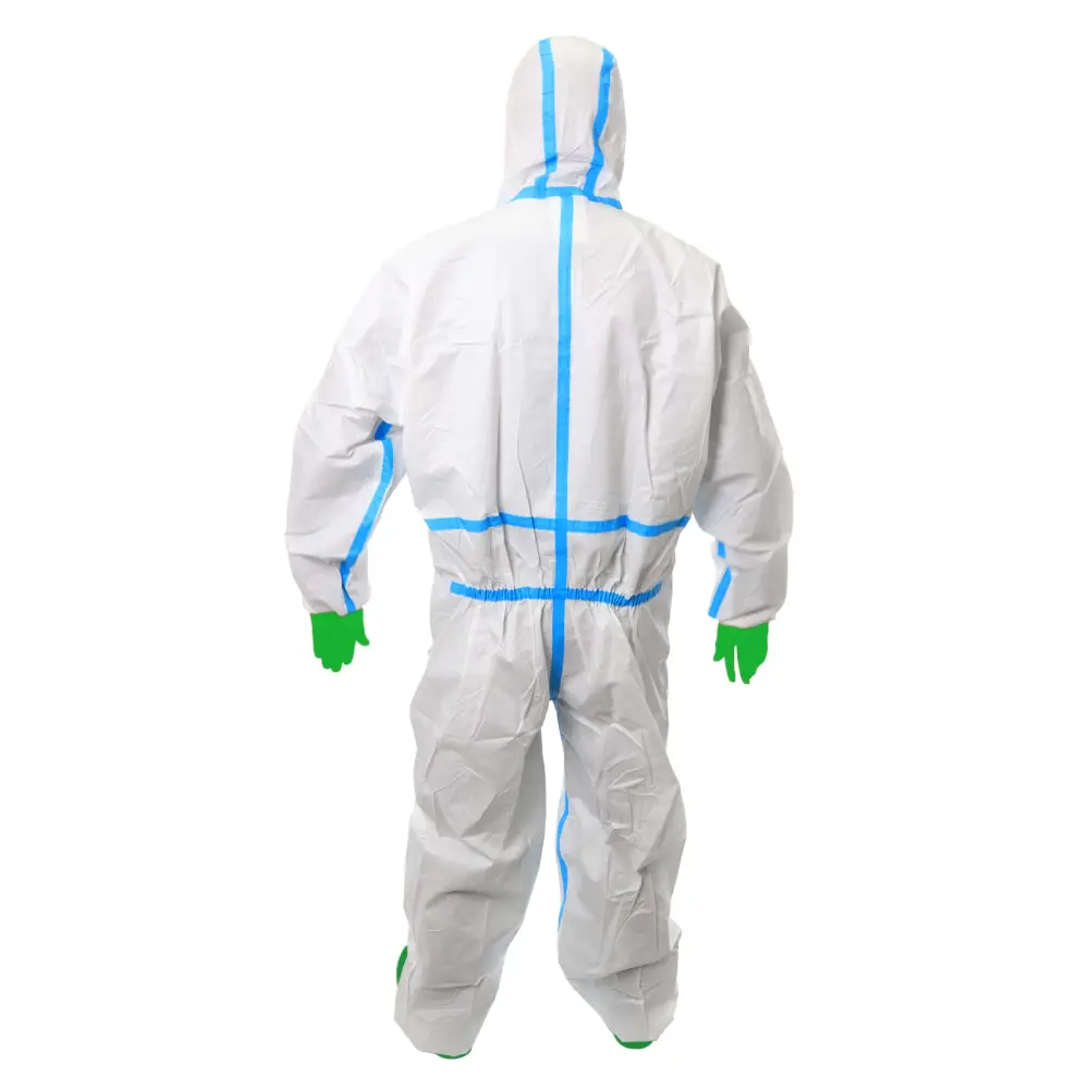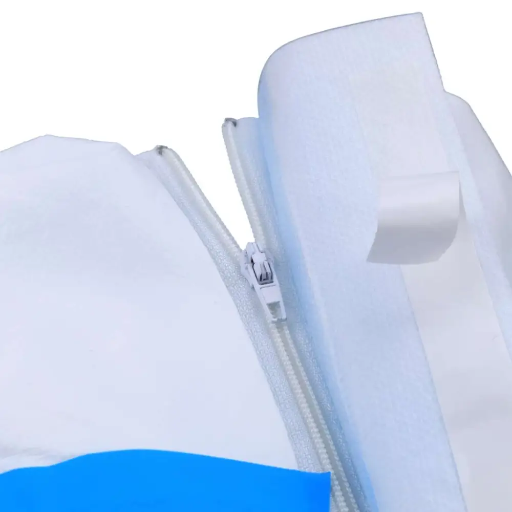 Elevada Proteção - As linhas azuis reforçam o fato de proteção, evitando a entrada de patrículas, líquidos ou agentes contaminantes. Composto por um capuz para maior proteção e por um fecho.