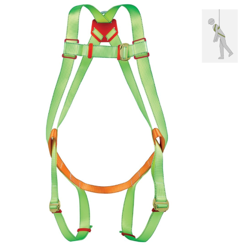 O Kit Arnês Dorsal de Anti-queda EPI-302-2 é ajustável nas coxas e no peito com uma fivela metálica, adequado para qualquer tipo de pessoa.