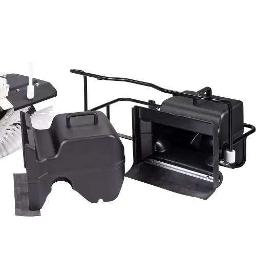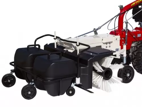 O coletor frontal, em plástico ABS, recolhe o lixo empurrado pela Escova P70 e descarga conveniente assim que necessário.