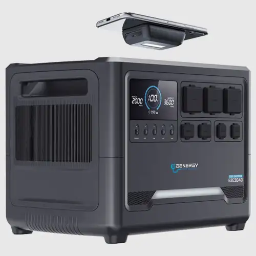 Esta Estação de Energia Portátil da Genergy, com uma capacidade de 3072 Wh e tecnologia de bateria LiFePO4, assegura uma longa vida útil de até 4000 ciclos, o que mantém mais de 70% da sua capacidade original.