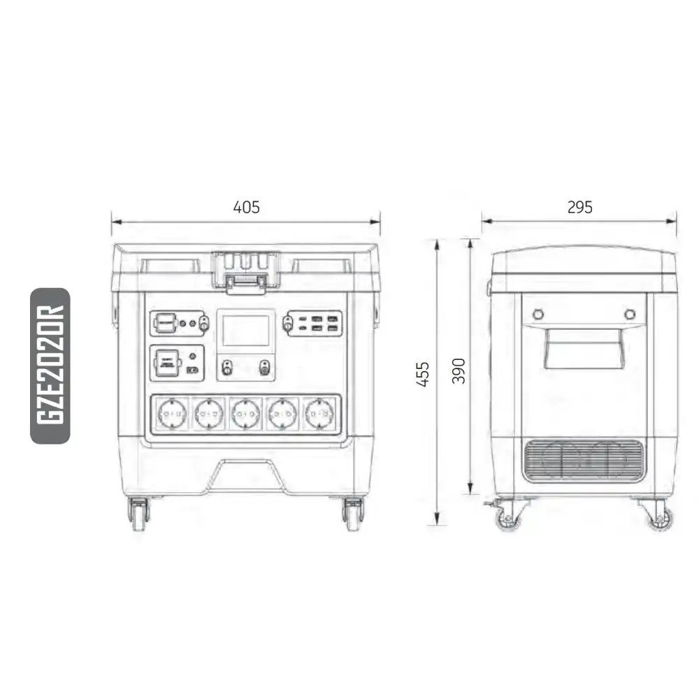 Ofrece varias tomas de corriente, incluyendo 5 tomas Schuko de 230 V con 2000 W de potencia, 2 puertos USB-C de 100 W y 4 puertos USB-QC 3.0 de 18 W Puertos, 1 toma de vehículo de 13,6 V/8 A y 2 tomas de CC de 13,6 V/8 A (DC5521).