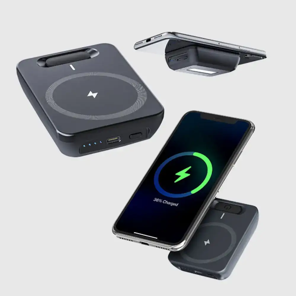 • Cargador inalámbrico extraíble con linterna integrada, ideal para exteriores y situaciones de emergencia.
