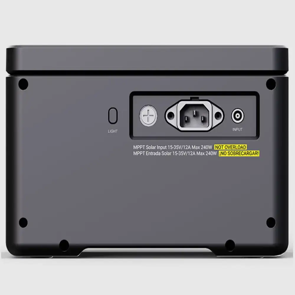 • Compatible con paneles solares gracias a la entrada MPPT, que permite una carga más eficiente mediante energía solar (panel de hasta 240 W).