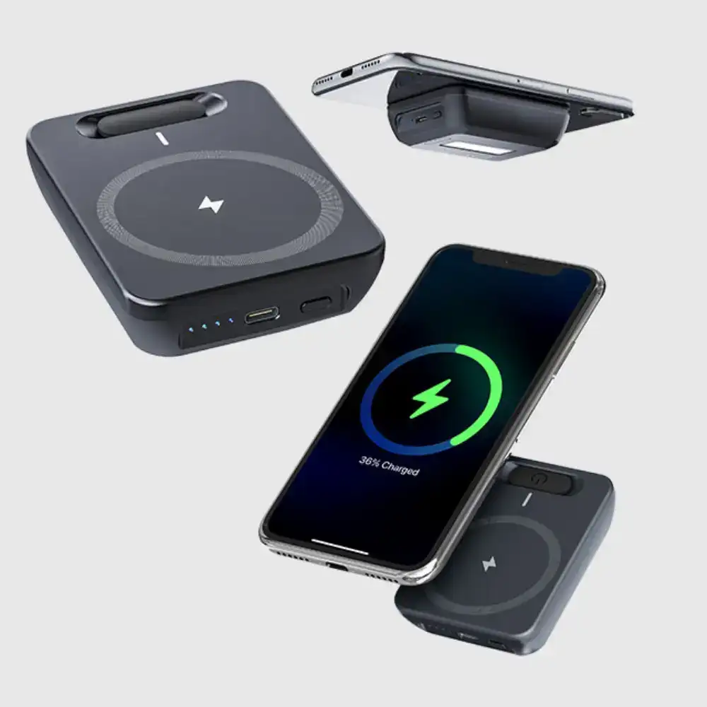 Removable power bank with wireless charging stands out, perfect for charging smartphones, smartwatches, or other compatible devices without the need for cables!