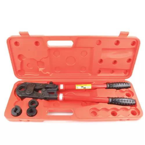 Alicate para tubos Multicamada excelente para profissionais, perfeito para amadores, com 4 matrizes distintas : 16, 20, 25, 32 mm.