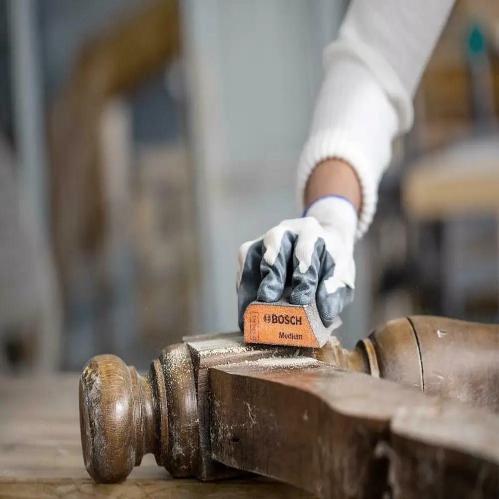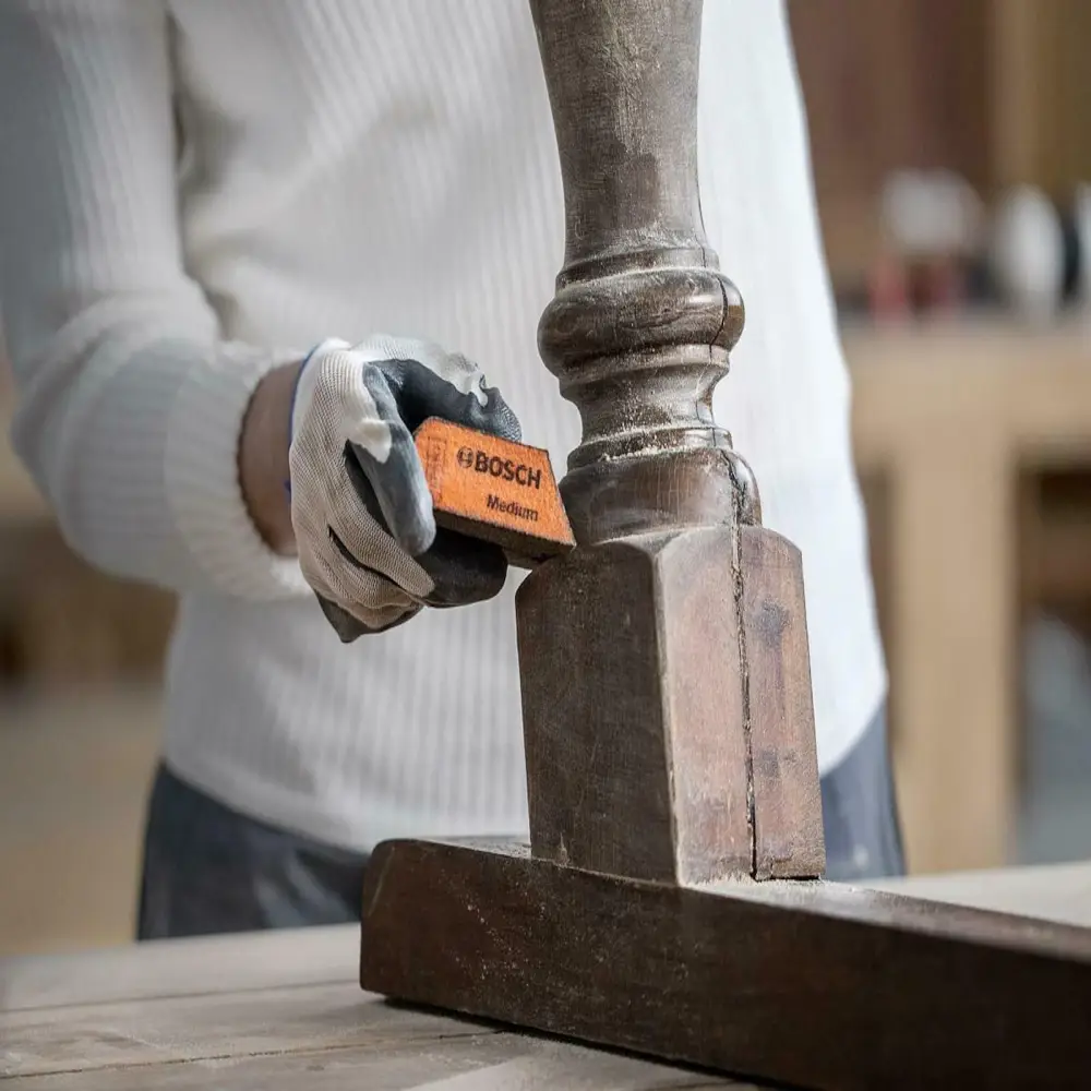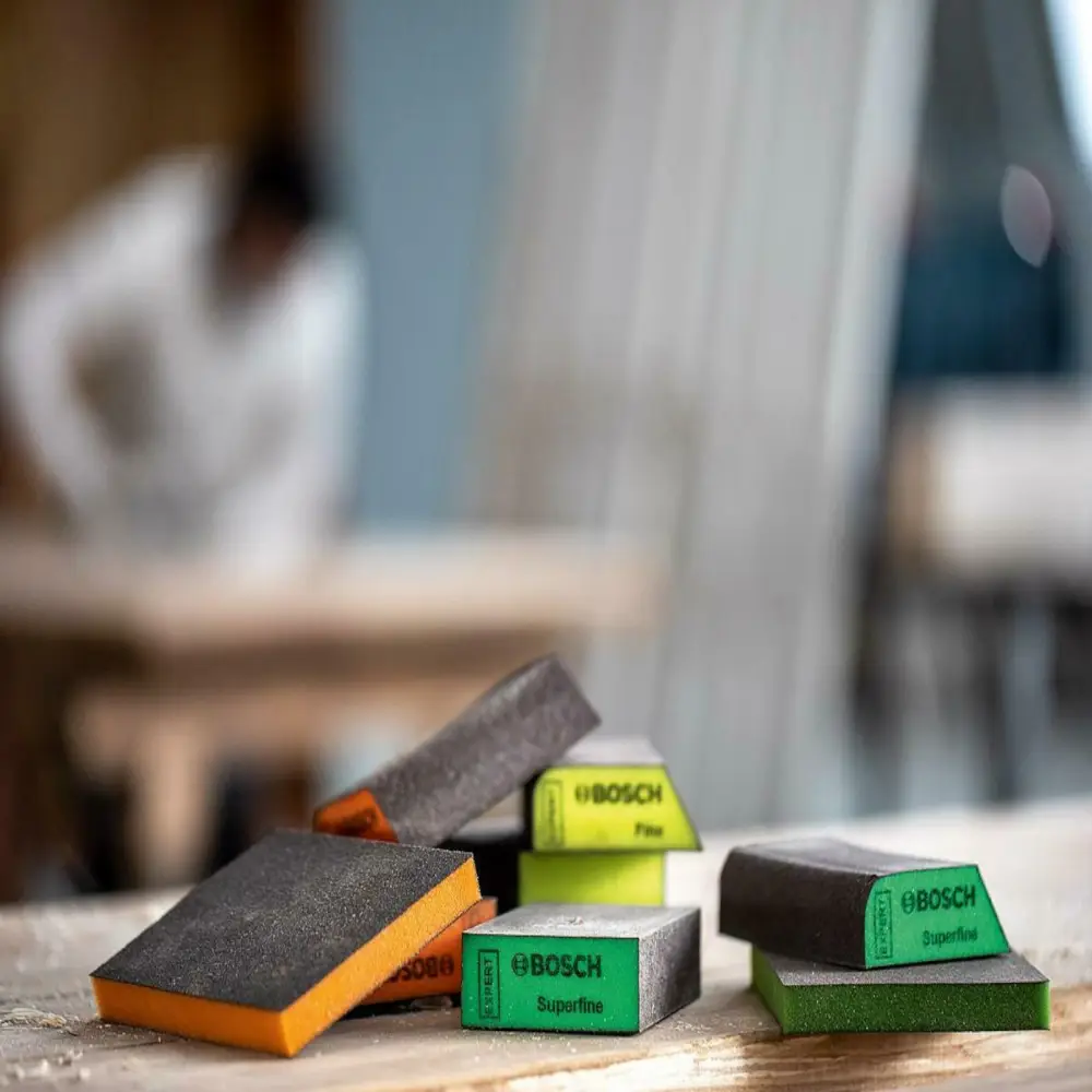 Com a inovadora estrutura de superfície, que utiliza técnicas avançadas de colagem e revestimento para fixar os grãos ao material de suporte, o bloco de espuma de lixamento Bosch EXPERT não perde os grãos ao lixar bordas e cantos, tornando-o extremamente resistente ao desgaste.