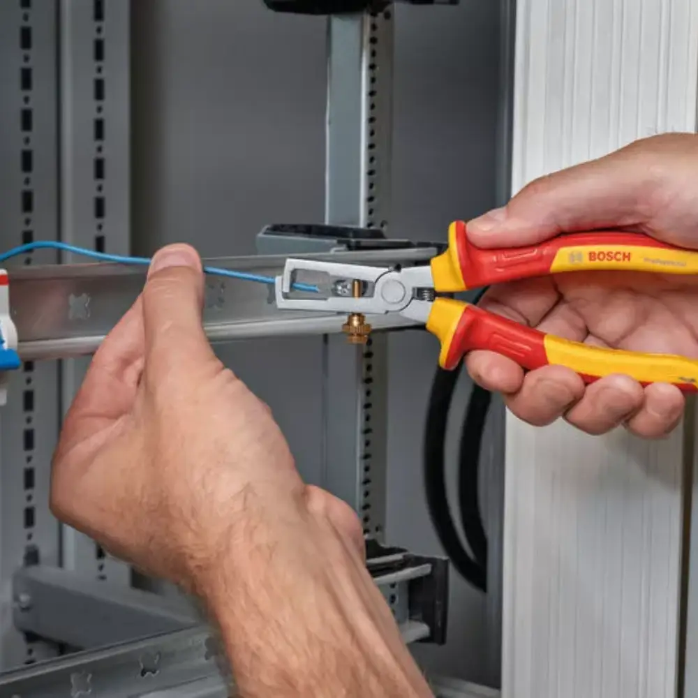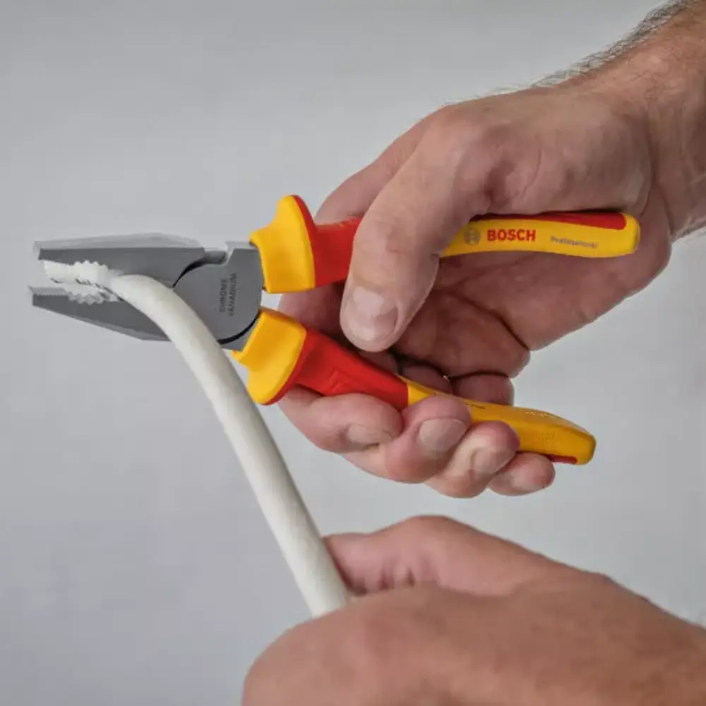 Com este conjunto profissional da Bosch pode agarrar ou puxar objetos como pregos, ou cortar/descarnar objetos como fios, mesmo se acidentalmente tocar em partes sob tensão.