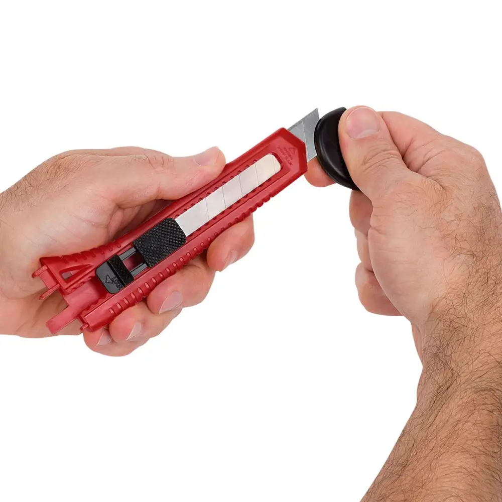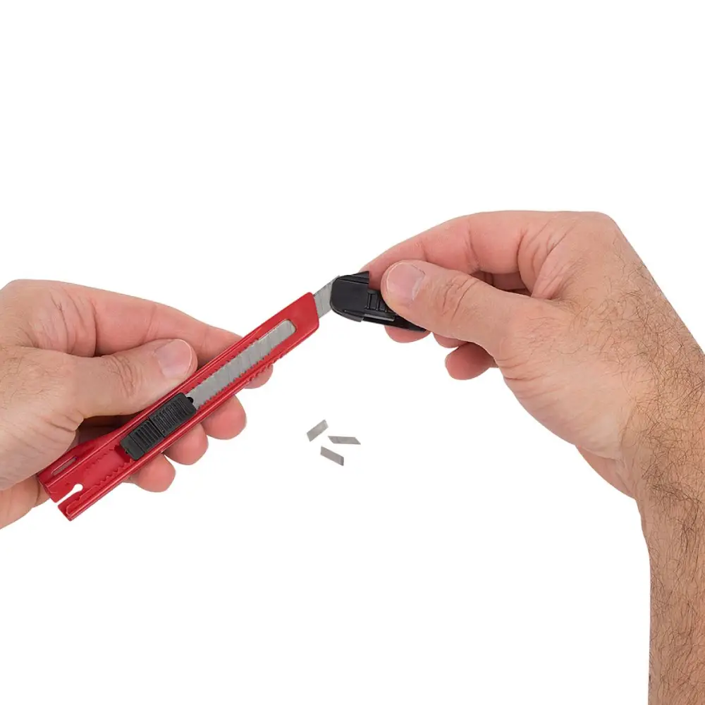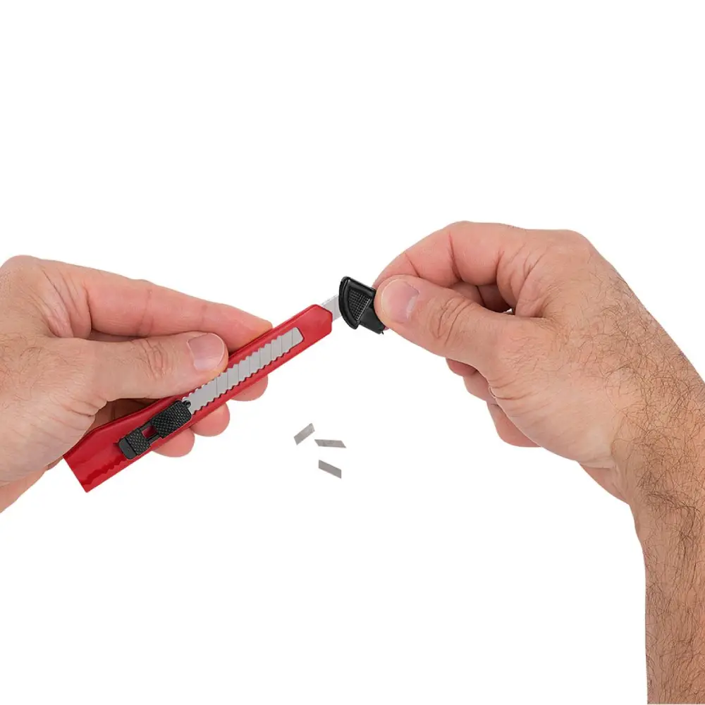 Use o mecanismo de bloqueio para bloquear a lâmina no lugar e utilize o cortador de lâminas para partir a parte cega e assim poder utilizar uma lâmina nova e afiada.