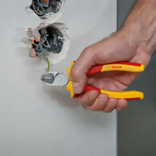 É certo que precisa de ferramentas fáceis de utilizar e que cumpram todos os requisitos legais. O prático Conjunto de Ferramentas Manuais VDE Bosch contém 2 alicates VDE, 3 chaves VDE, 1 faca corta-cabos VDE e 1 medidor de fase de polo único. Pode agarrar ou puxar objetos como pregos, cortar fios ou apertar e desapertar parafusos ou descarnar fios, mesmo se acidentalmente tocar em partes sob tensão.