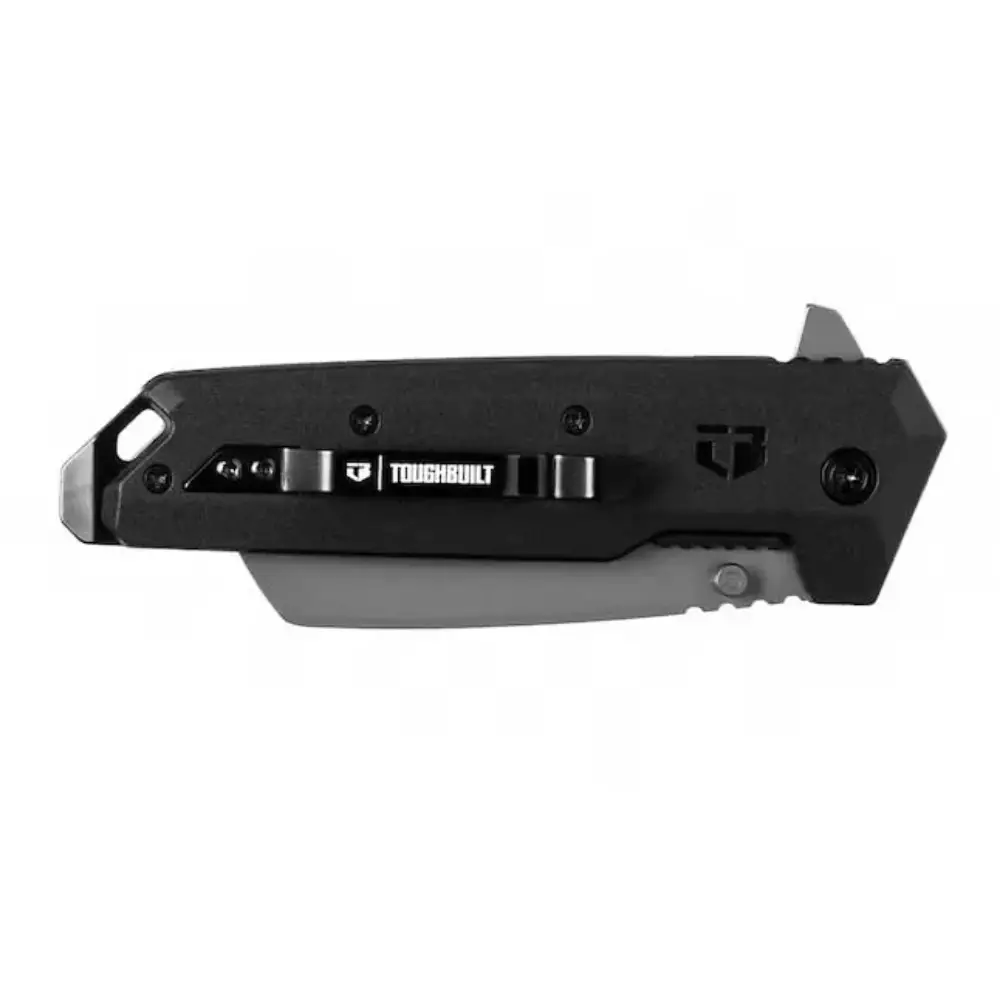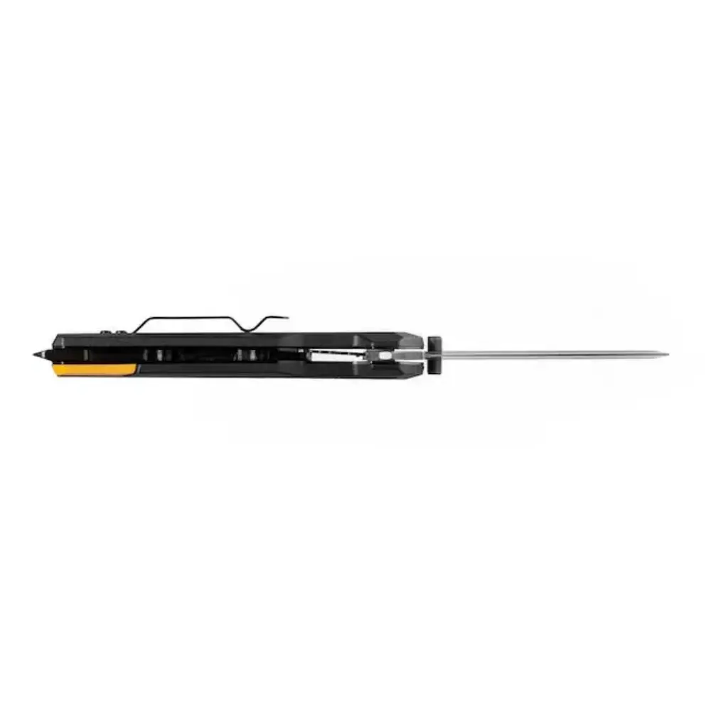 A faca dobrável pode ser facilmente aberta com uma só mão, utilizando o pino para o polegar ou o flipper.