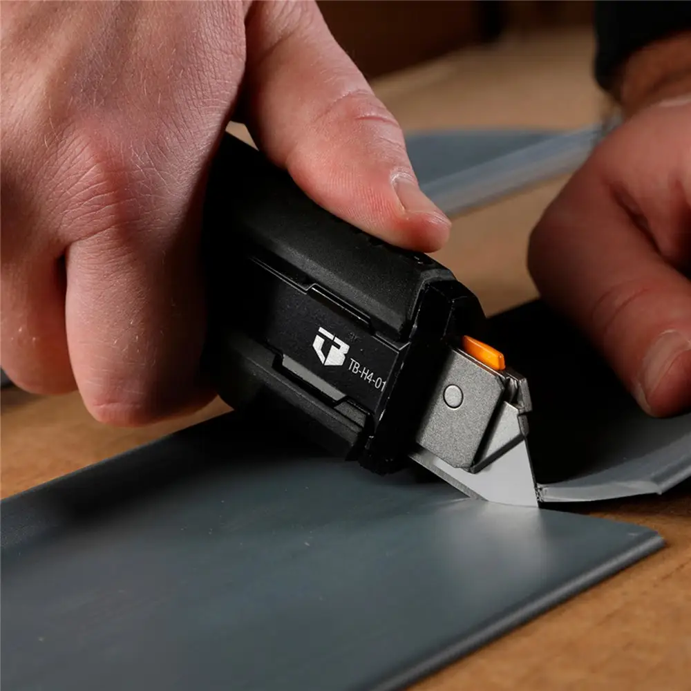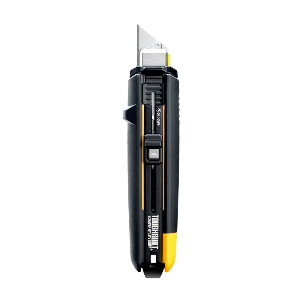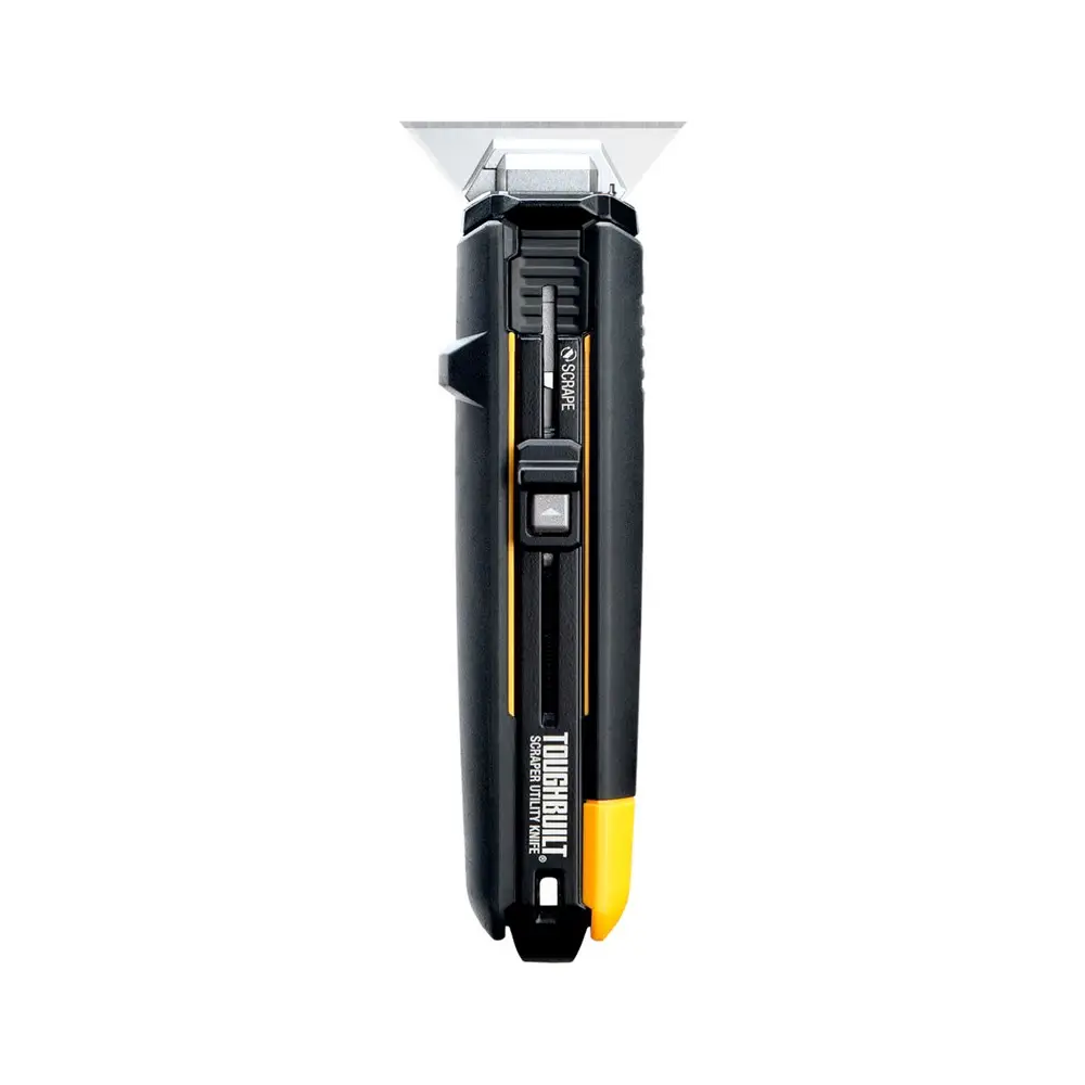 - Utiliza o mecanismo patenteado da ToughBuilt® para transformar facilmente uma faca utilitária em um raspador com o toque do polegar